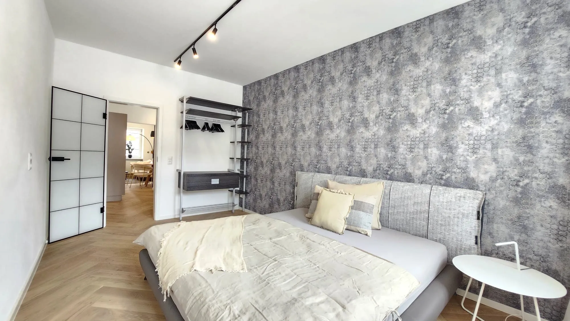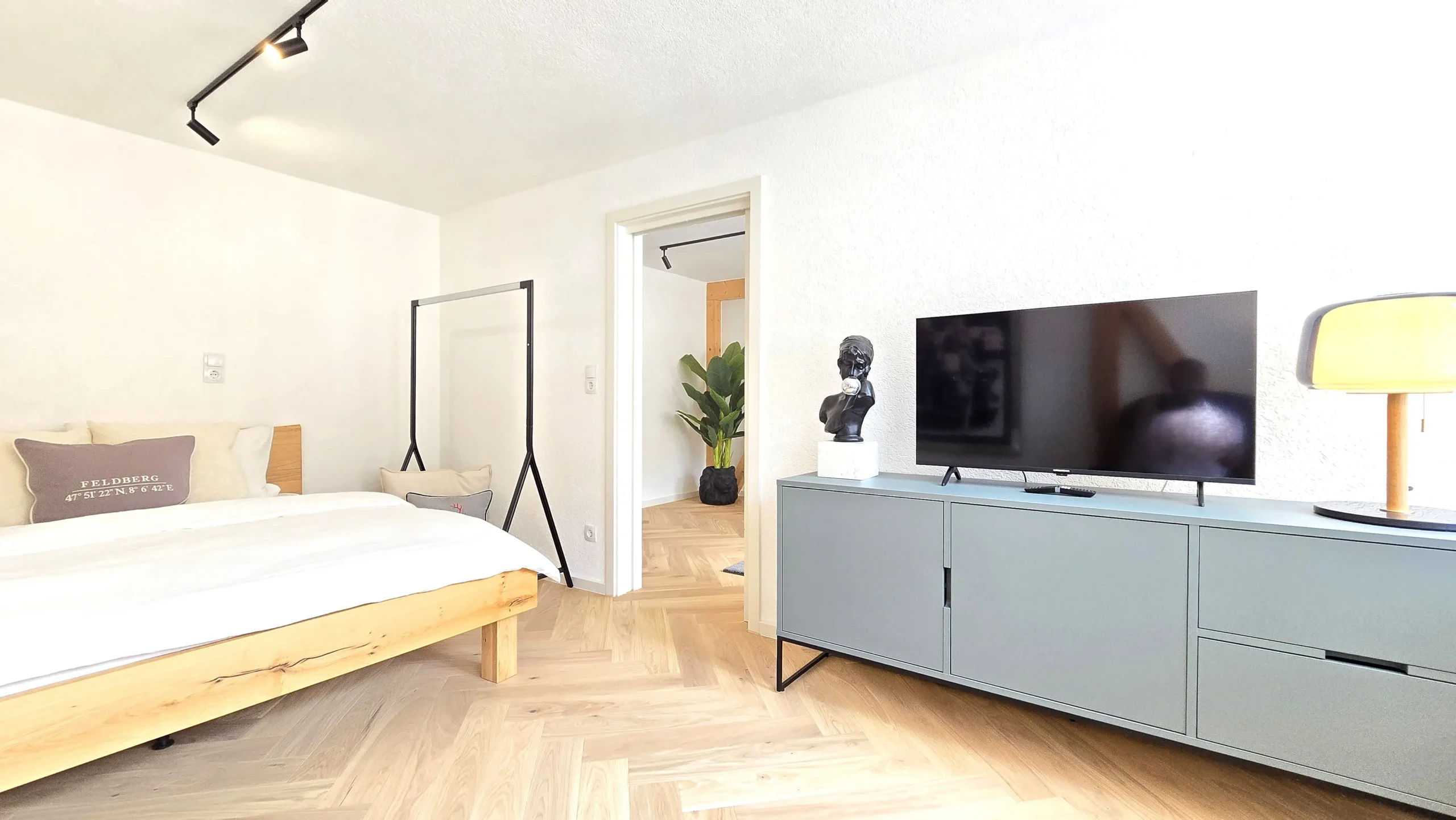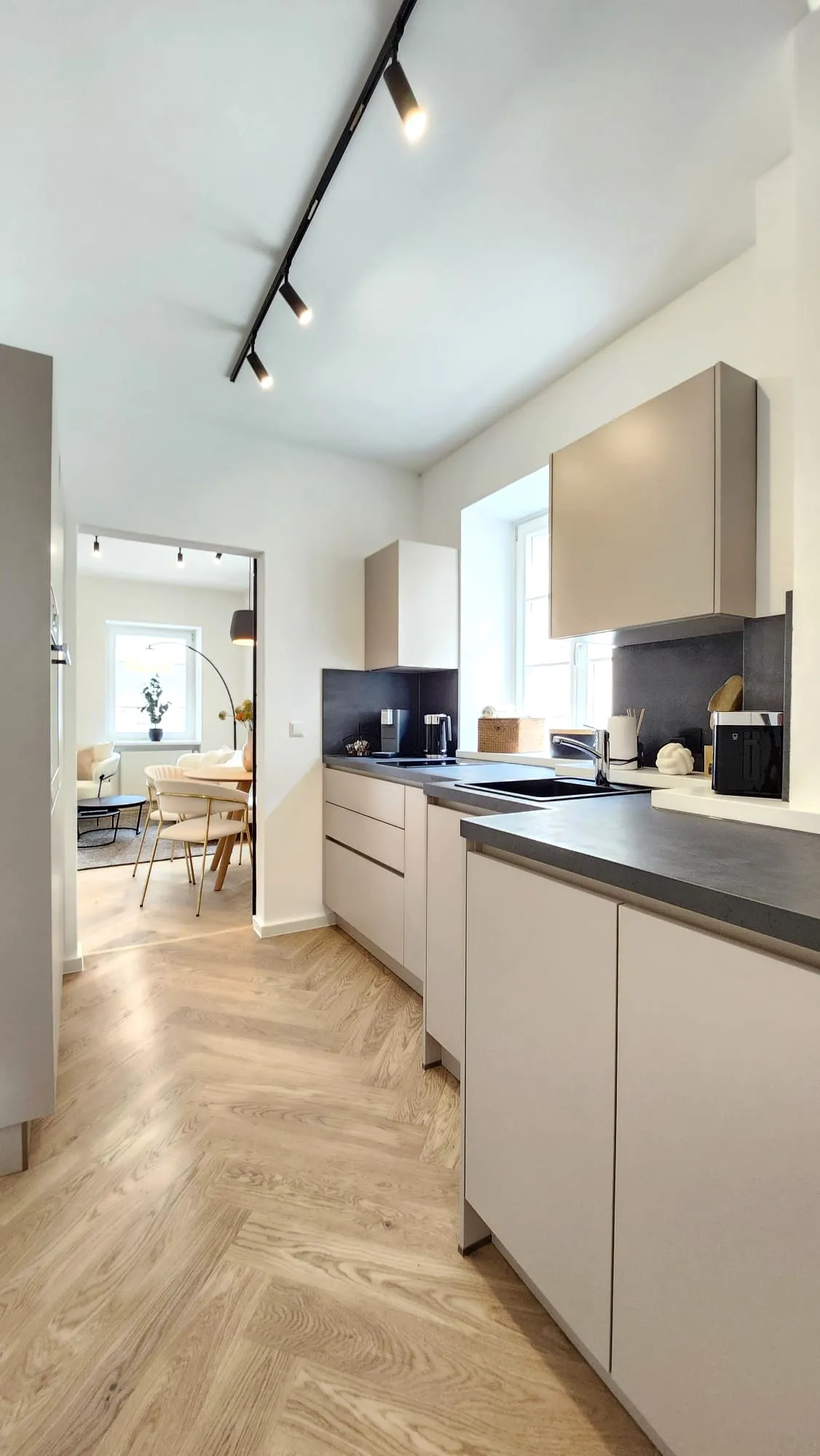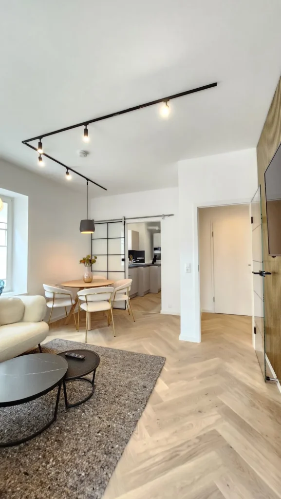 1 Wohn-/Esszimmer, 2 Schlafzimmer, 1 Badezimmer, 1 Balkon. 2023 hochwertig modernisiert. Ideal für 2–3 Personen oder Kollegen.