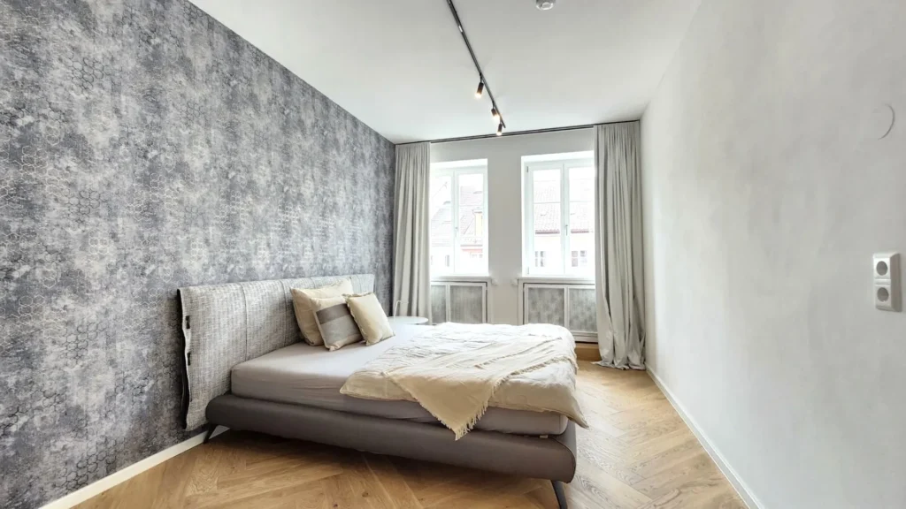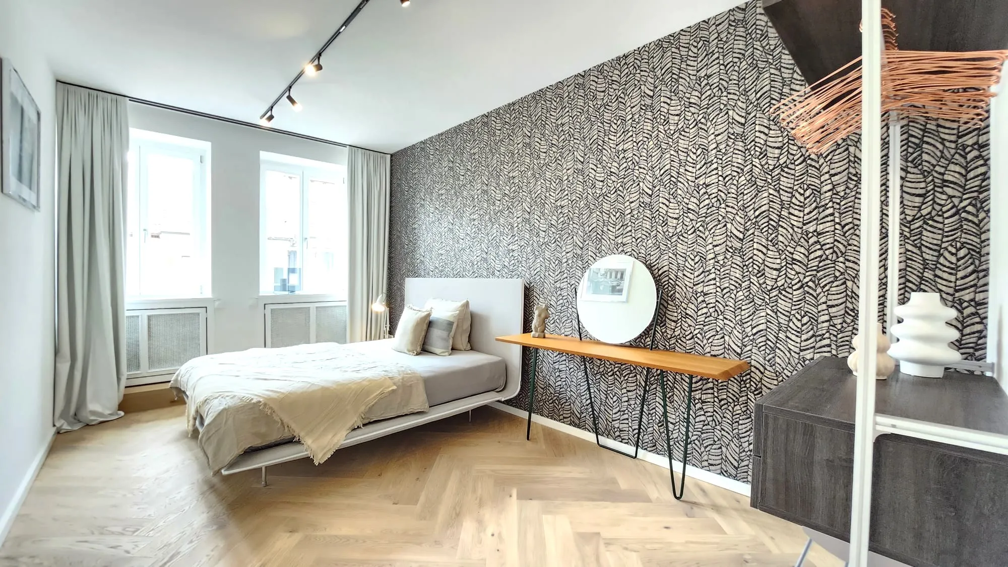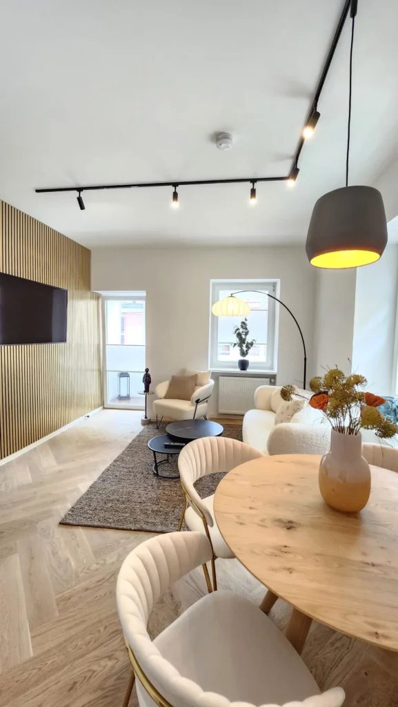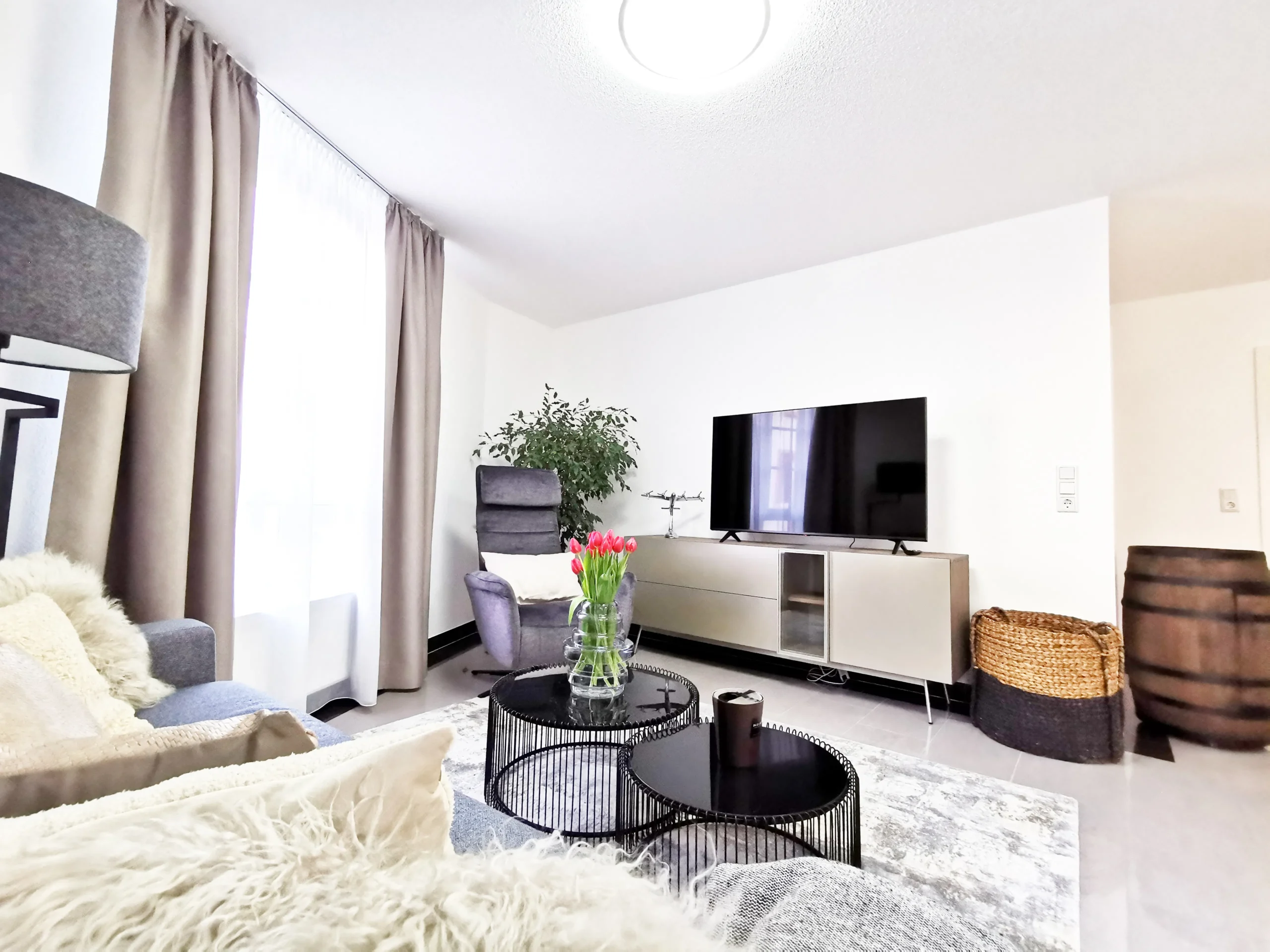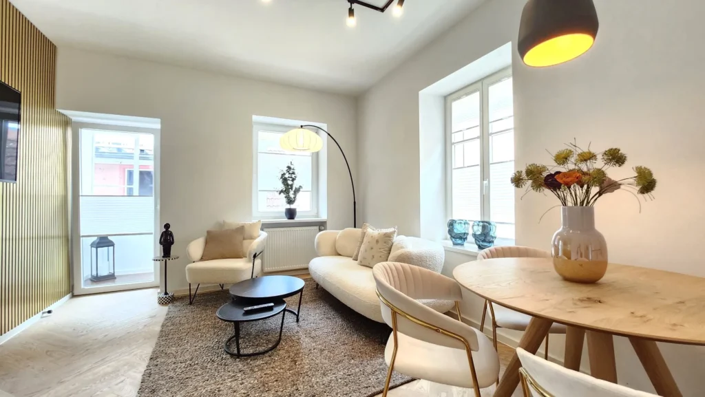 1 Wohn-/Esszimmer, 2 Schlafzimmer, 1 Badezimmer, 1 Balkon. 2023 hochwertig modernisiert. Ideal für 2–3 Personen oder Kollegen.
