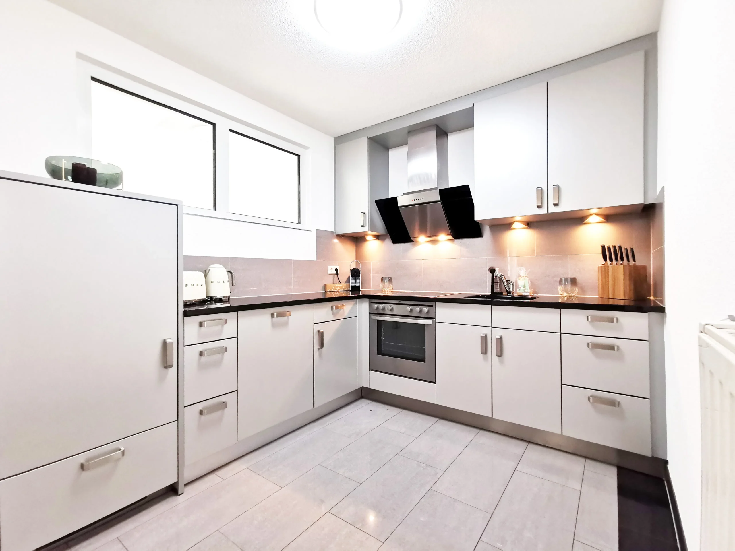 Komfortables Zuhause statt Hotelzimmer. Küche, Waschtrockner, alles dabei.